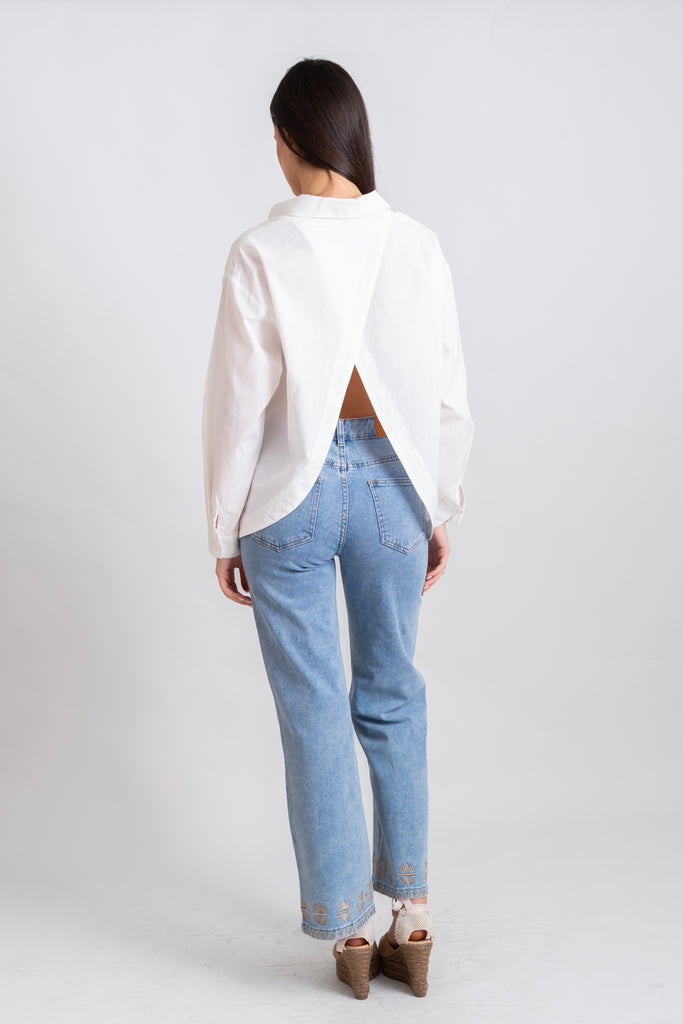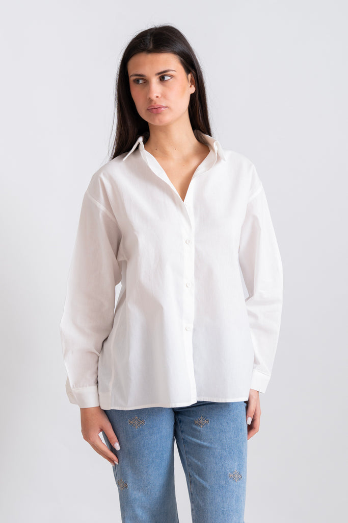 Λευκό Πουκάμισο. Διαθέτει διακριτικά κουμπιά και άνοιγμα στην πλάτη. Συνδυάζει άνεση και στυλ.