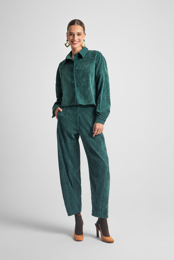 Κοτλέ ψηλόμεσο παντελόνι με ελαστική μέση σε slouchy εφαρμογή. Διαθέτει πλαϊνές τσέπες και κλείσιμο με κουμπί και φερμουάρ.