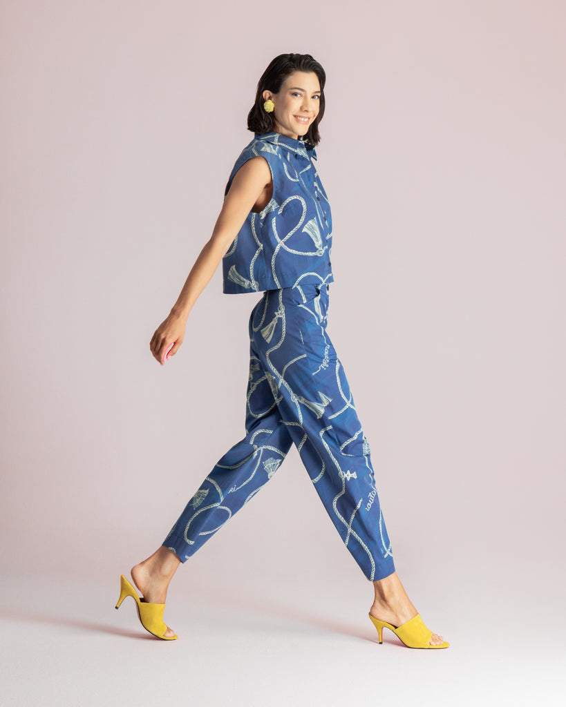 Ψηλόμεσο Παντελόνι με Nautical σχέδιο. Διαθέτει πλαϊνές τσέπες και κλείσιμο με κουμπί και φερμουάρ μπροστά.